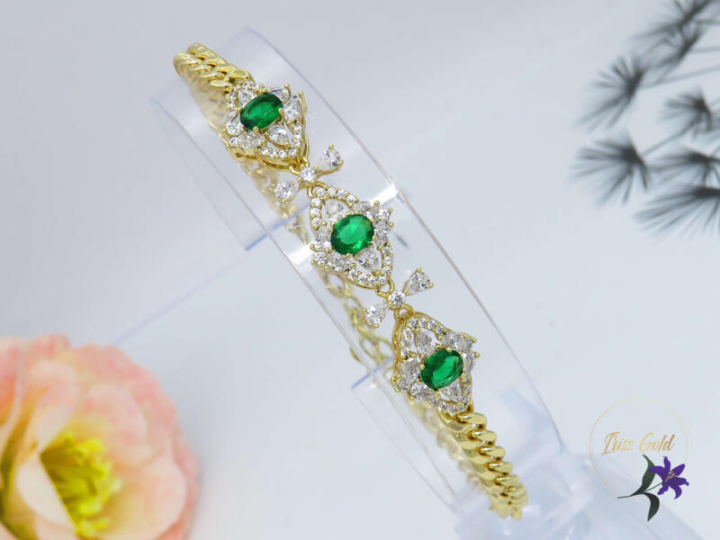 Gold Filled gyönyörű zöld köves karkötő Szin: 14K Méret: 16cm+3cm Szélesség: 3x10mm A forgalmazott divatékszerek alapanyaga nikkel és ólommentes ezért többnyire nem okoznak allergiás tüneteket, nyugodtan hordhatják fémérzékeny emberek is. Általában nem színezik a bőrt és más divatékszerekhez képest nagyságrendekkel jobb kopásállósággal rendelkeznek. A fehér (ezü