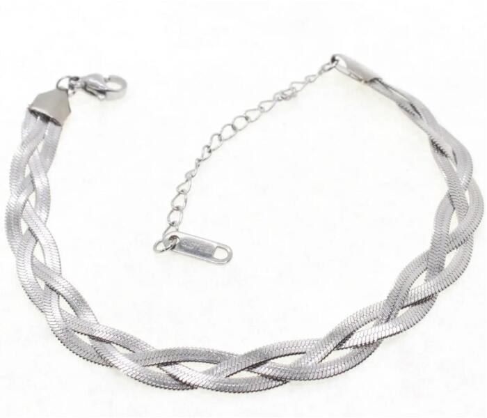 Janin karkötő Ez az elegáns karkötő a fonott dizájnjával a finomság és a stílus tökéletes összekapcsolása. A fonott szerkezet dinamikus megjelenést kölcsönöz a karkötőnek, amely egyben finom és diszkrét is. Ez a karkötő kiváló minőségű rozsdamentes acélból készült. Elegáns fényessége miatt ez az ékszer ideális kiegészítő a mindennapi viselethez és formáli