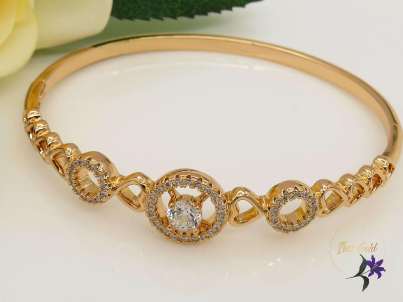 Divatos gold karperec cirkóna kővel Szin : 18 Kr Méret: 60 , 10 mm A forgalmazott divatékszerek alapanyaga nikkel és ólommentes ezért többnyire nem okoznak allergiás tüneteket, nyugodtan hordhatják fémérzékeny emberek is. Általában nem színezik a bőrt és más divatékszerekhez képest nagyságrendekkel jobb kopásállósággal rendelkeznek. A fehér (ezüst) színű ékszerek ug