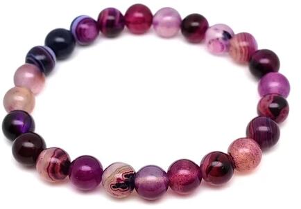 Achát karkötő (golyó szinezett sáv lila Kína Karkötő ásvány)Az ásvány golyók gumira vannak felfűzve. Az ásványok színbeli aránya eltérhet a képen láthatótól. Amit az achátról érdemes tudnod: Az achát minden színben fellelhető, többnyire szürke, kékesszürke, zöldesszürke, szürkésfehér, barna csíkozással, áttetsző. Lelki gyógyhatás: Az achát lelki gyógyh