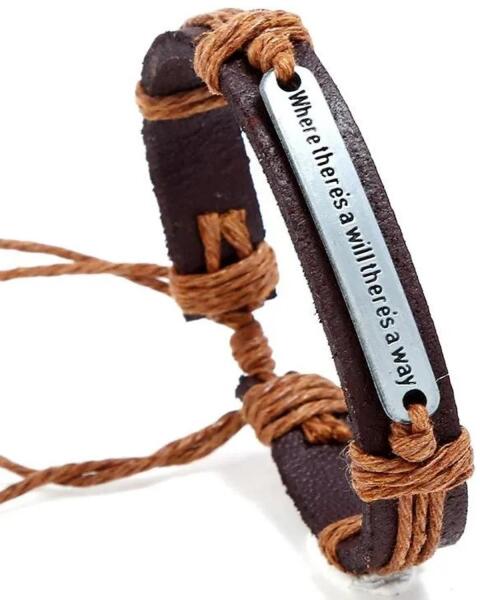 Sentence Karkötő Ez a karkötő az egsszerűságet és a mély jelentést kombinálja. Nem csak stílusos kiegészítő, hanem inspiráció is a mindennapi viselésre. A vésett idézet a fém medálon - Where there is a will, there is a way (Ahol akarat van, ott út is van) - az elszántságra és állhatatosságra emlékeztet, tökéletes azok számára, akik kihívásokkal néznek szembe, vag
