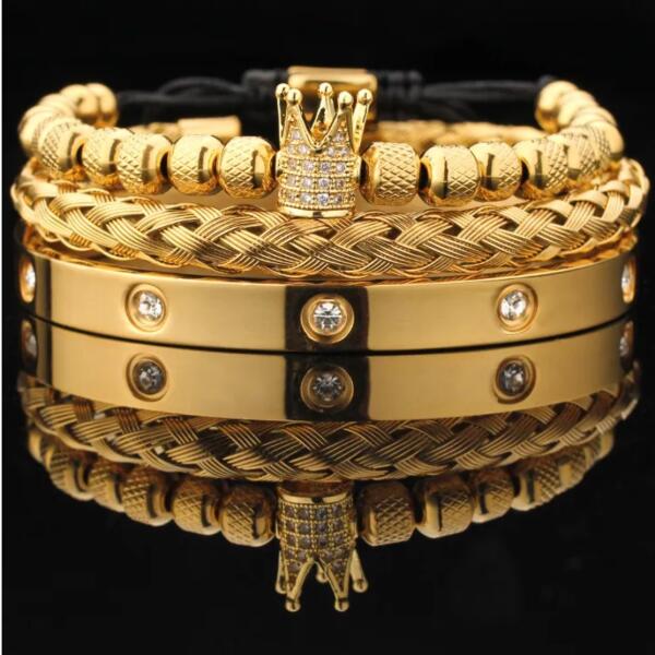 Hasiba karkötők A Hasiba karkötők a kifinomult dizájnt a luxus érzetével ötvözik. Ez a háromrészes szett különböző dizájnnal rendelkező karkötőket tartalmaz. Együtt harmonikus és elegáns egységet alkotnak, amely minden kézen felhívja a figyelmet. Ezek a karkötők tökéletes választás azok számára, akik szeretik a modern stílust a királyi eleganciával kombinálni.