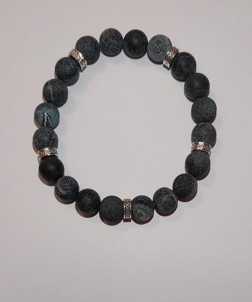Matt Szürke achát ásványból készült férfi karkötő Gyöngyök mérete: 10 mm-es ásványgyöngyök Rugalmas, gumis ékszerdamil alapra készült Az Achát erős földelő ásványfajta. Támogatja a fizikai, szellemi és érzelmi egészségünk megfelelő működését. Erősíti a bizalom érzését. Az ékszerek természetes ásványból készülnek, így méretben, színben, árnyalatb