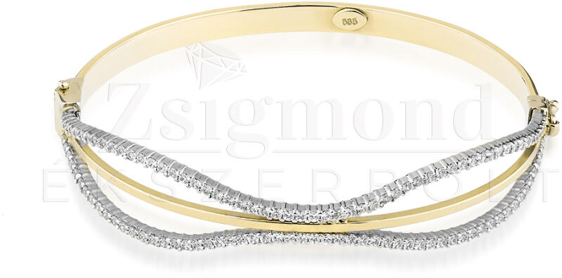 Aranysárga színű karkötő, melyet fehér cirkónia kristályok tesznek csillogóvá. A kristályok karmos foglalatban helyezkednek el, a karkötő elülső díszítik. Időtálló ékszer, nem feketedik víz hatására sem. Mindennapi használatra is tökéletes választás. Antiallergén ékszer. 14K arany színben kapható. Karkötő szélessége: 9 mm. Karkötő hossza: 18 cm. Az antiallerg
