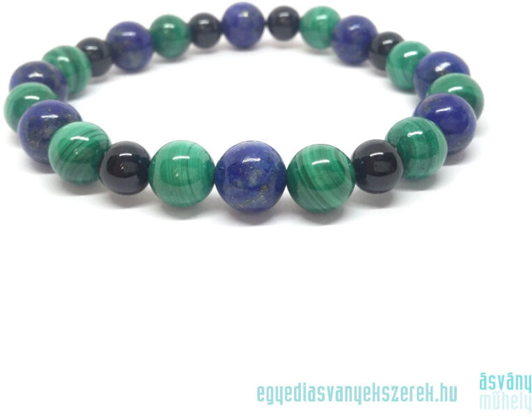 Ez egy gyönyörű egyedi tervezésű 8 mm átmérőjű gyöngyökből készült ónix ásványkarkötő.