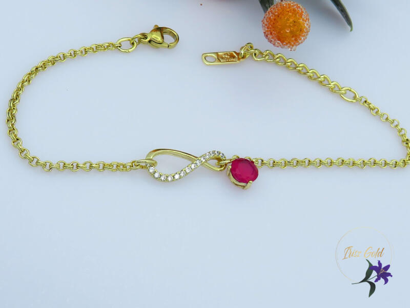 Gold Filled karkötő végtelen jelel és pink kis csüngős kővel Szin: 14K Méret: 17+3 cm /2-7mm A forgalmazott divatékszerek alapanyaga nikkel és ólommentes ezért többnyire nem okoznak allergiás tüneteket, nyugodtan hordhatják fémérzékeny emberek is. Általában nem színezik a bőrt és más divatékszerekhez képest nagyságrendekkel jobb kopásállósággal rendelkeznek. A fehé