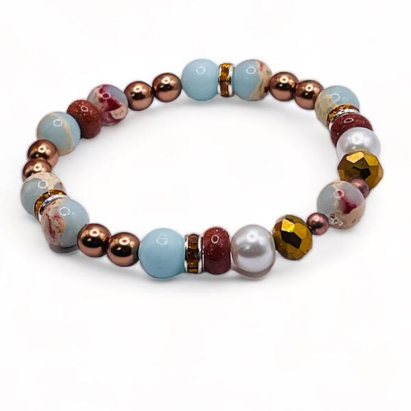 Egyedi, gondosan, szeretettel, kézzel készített karkötő variszcit ásvány felhasználásával, gumis damilra fűzve, medállal. Nagyon kedves ajándék Anyának, testvérnek, Nagyinak, barátnőnek, vagy akár saját magunknak. Az ásvány karkötők régóta használatosak az emberek által, mivel az egyes kőfajták energetikai tulajdonságai hozzájárulnak az egészségügyi állapot jav
