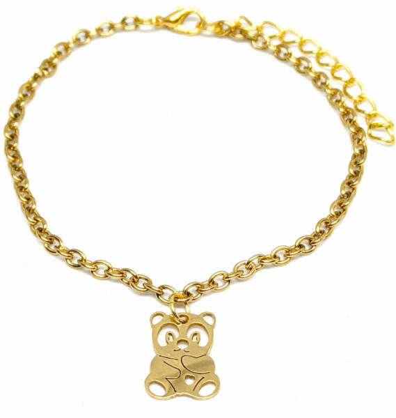 Karkötő mérete 17+5 cm. (Ha más méretet szeretnél, rendeléskor a MEGJEGYZÉSBE írd be. ) Pandás karkötő. Paraméterek: Charm mérete 1,6x1,2 cm. A színe arany, anyaga nemesacél. Karkötő anyaga rozsdamentes acél.