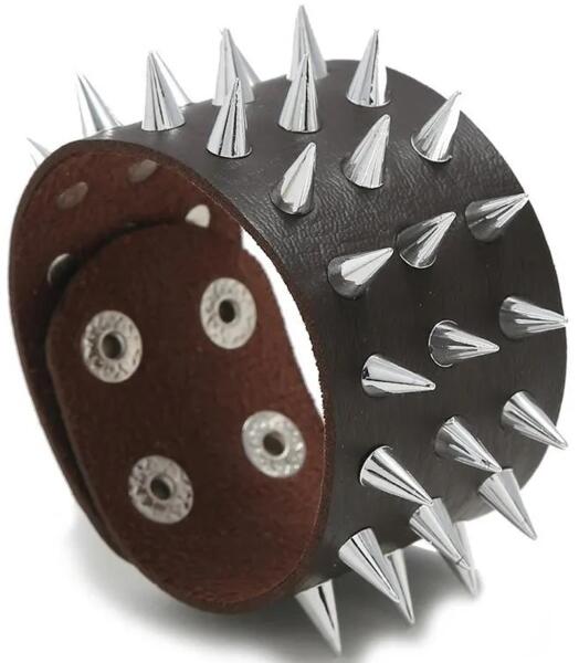 Spike Karkötő A Spike karkötő merész és nem szokványos egyedeknek való, akik nem félnek kifejezni egyedi stílusukat. Ez a karkötő tüskés szegecsekkel díszített, amelyek azonnal magukra vonzzák a tekintetet és öltözékébe egy csipet lázadást visznek. A karkötő masszív, miközben kényelmesen viselhető. A szegecsek látványos hatást keltenek viselés közben. Ez a karkö