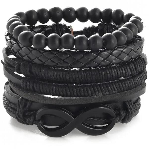 Bryan Férfi Karkötők Bryan karkötők uraknak szettben, verhetetlen áron. Anyaguknak köszönhetően érzékeny bőrű emberek is viselhetik. Egy karkötő gumis, a többi zsinóros, húzással állítható méretű. A szett 4db karkötőt tartalmaz. Tulajdonságok: A karkötők mérete: állítható Szín: Fekete