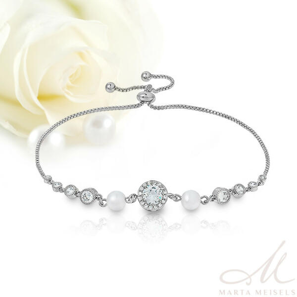 Különleges és bájos, ez a kifinomult menyasszonyi karkötő egy igazi ékszer, melynek varázsa tökéletesen kiegészíti esküvői öltözeted. A gyönyörűen kidolgozott részletek és a pompás kivitelezés lenyűgözi a figyelmet, miközben egyedi stílust kölcsönöz viselőjének. A karkötő alapja bőrbarát fémötvözet ródium bevonattal, mely tartósságot és eleganciát biztos