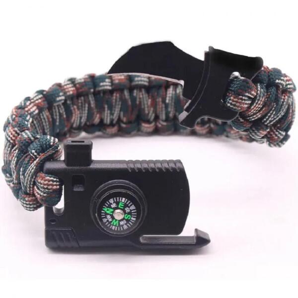 Túlélő karkötő/Tip2 Túlélőkarkötő sokrétű felhasználhatósággal, szuper áron. A karkötő kovakövet, iránytűt, sípot és kést rejt magában. Paracord zsinórból fonva. Ha a karkötőt szétbontja, kb. 2,5m hosszú, 150kg teherbírású zsinórt kap. Ezt a zsinórt cipőfűzőként, sátor rögzítésére, pórázként használhatja. A felszerelésük kiegészítéseként turis