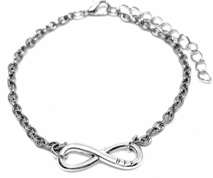 Végtele n-BFF (Best Friends Forever - Legjobb Barátok Örökké) charmos karkötő, 1 charmmal. Paramé terek: Charm mérete 3x1 cm. Anyaga fémötvözet, karkötő anyaga rozsdamentes acél. Karkötő mérete 17+5 cm. (Ha ettől eltérő méretet szeretnél, rendeléskor a MEGJEGYZÉSBE írd be. ) A legfontosabb dolog a világon a barátság, hiába űzzük az anyagi javakat egész nap, ha bar