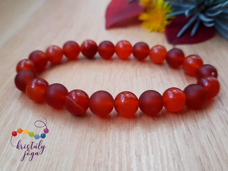 Ha karneollal meditálunk, segít eltávolítani a gondolatokat. Leküzdi az erőszakot, önbizalomra tanít, kitartást és bátorságot ad. Megtisztít, és új energiával tölt fel más köveket. A karneol javítja a vérképet, oldja a vérrögöket és a véraláfutásokat, segít elállítani a vérzést, gyorsítja a sebek gyógyulását, hatásos vérmérgezés esetén is. Szabályozza a