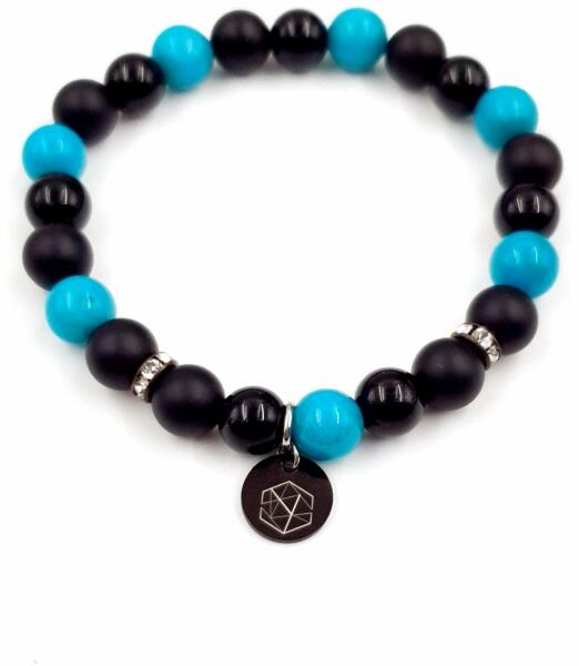 Yvonne Design medálos ásványkarkötő matt ónix, fényes ónix és kék kvarc ásványokból készítve.