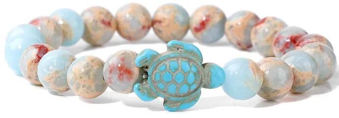 Tortuga Karkötő Modern Tortuga karkötő verhetetlen áron. Kialakításával Önt is biztosan elbűvöli, szépen kiegészíti öltözékét. Az ékszer nem tartalmaz nikkelt, ezért érzékeny bőrű emberek is viselhetik. Tulajdonságok: A karkötő mérete: gumis Szín: Multi 2 Anyaga: Gyöngygolyócskák A golyócskák mérete: 0,8cm Díszítése: Teknős medál