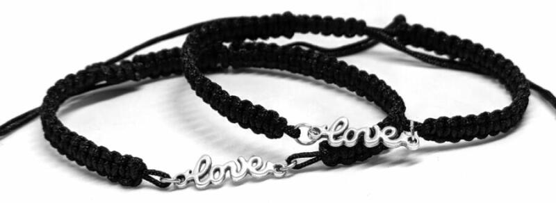Love felirat charmos karkötő, páros. 2 db. Paraméte rek: Charm mérete kb. 1,5 cm. Anyaga fémötvözet, karkötő anyaga szövet. Karkötők mérete állítható, mindenkire jó. A legfontosabb dolog a világon a végtelen szeretet, hiába űzzük az anyagi javakat egész knap, ha szeretet nincs, semmi nincs.