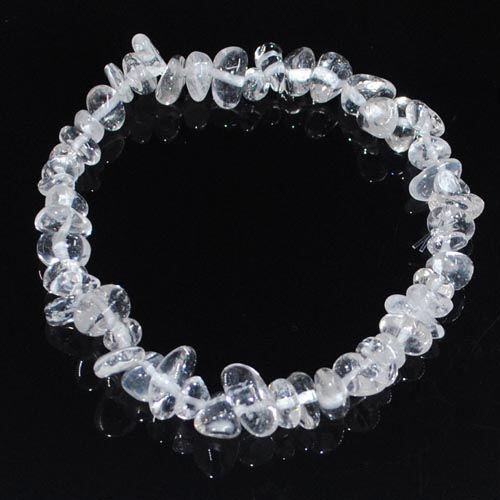 Hegyikristály ásványból készült szemcsés ( splitter vagy chips néven ismert) karkötő. A karkötőből gumis vagy kapcsos rendelhető. A kapcsos karkötő strapabíró acél sodronyra van fűzve, ezüstözött, nikkel mentes fém részekkel van szerelve, delfin kapoccsal záródik. Hossza: 18-23cm közt lánchosszabbítóval állítható. A gumis karkötő szilikon gumira fűzött, kapocs