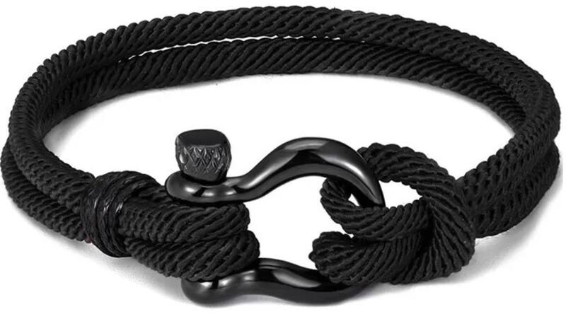 Darian karkötő Ez a kifejező Darian karkötő modern dizájnt kombinál robusztus, de egyben stílusos megjelenéssel. A zsinór és a fekete fém csat dinamikus kontrasztot alkot, amely azonnal magára vonja a figyelmet. A horgonyra emlékeztető csat tengeri esztétikát kölcsönöz a karkötőnek, amely az erőt és stabilitást szimbolizálja. A karkötő kényelmes viselet, és ideális h