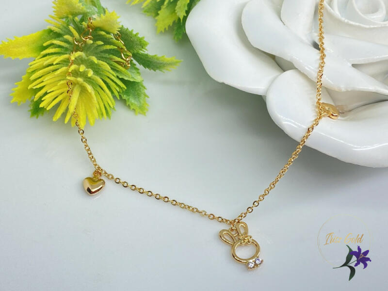 Vékony láncon nyuszi és sziv diszitők Szin: 18K Méret: 18+3cm A forgalmazott divatékszerek alapanyaga nikkel és ólommentes ezért többnyire nem okoznak allergiás tüneteket, nyugodtan hordhatják fémérzékeny emberek is. Általában nem színezik a bőrt és más divatékszerekhez képest nagyságrendekkel jobb kopásállósággal rendelkeznek. A fehér (ezüst) színű ékszerek ugyan