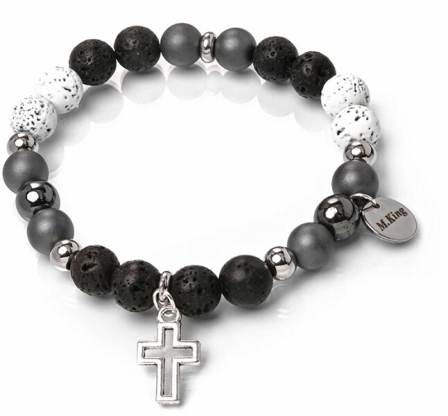 Rendkívül vagány és látványos lávakő és hematit karkötő, erőteljes stílus és igényes kidolgozás. Férfiaknak és nőknek is tökéletes választás. Figyelem! A képen exkluzív kivitelű, rugalmas karkötő látható kapocs nélkül, de kérheted extra erős acélsodronyra is delfinkapoccsal és 5 cm hosszabbítólánccal. Ha a kapcsos verziót kéred, ami nem szakad, nem nyúlik,