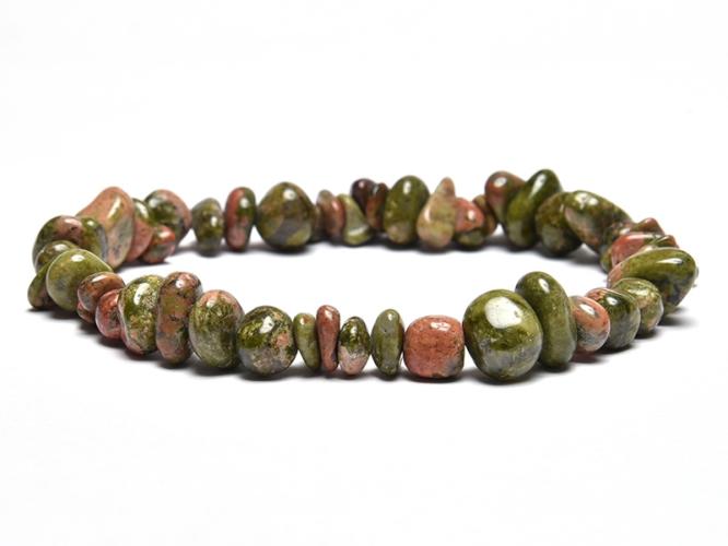 Az unakit 0,5-1 cm-es gömbölyített szemeiből, gumira fűzött karkötő. A karkötő hossza kb. 18,5 cm. Az ásványok nem helyettesítik az orvosi diagnózist és kezelést. Az unakit hatása : az unakit azoknak ajánlott, akiket túlságosan befolyásolnak mások. Jótékonyan hat a a gyomor és a bél olyan megbetegedései esetén, amelyet a stressz váltott ki. Megszünteti azokat a körü