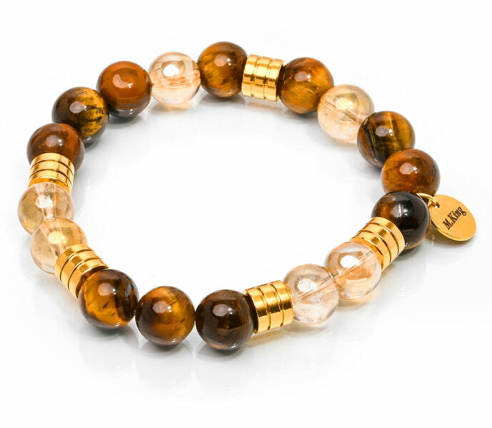 Az ókori Egyiptom gazdagsága elevenedik meg ezen a tigrisszem és arany angyal aura exkluzív ásvány karkötőn, az arany fémes és megigéző csillogásával és erejével. A Maria King kollekció kiemelt darabja. Figyelem! A képen exkluzív kivitelű, rugalmas karkötő látható kapocs nélkül, de kérheted extra erős acélsodronyra is delfinkapoccsal és 5 cm hosszabbítólánccal. Ha