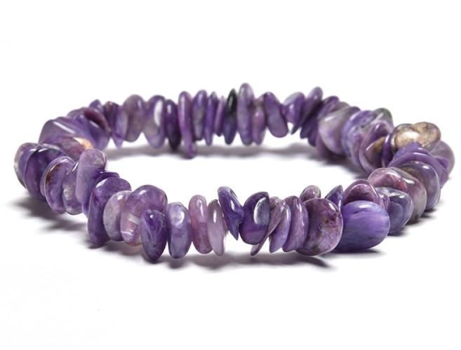 A karkötő a csaroit 9-12 mm-es széles szabálytalan, lapos szemcséiből készült, gyöngyfűző gumira fűzve. A hossza kb. 18,5 - 19 cm. A karkötő méretének meghatározása : a csuklód méretéhez adj hozzá 2 cm-t. Az ásványok nem helyettesítik az orvosi diagnózist és kezelést. A csaroit hatása : a csaroit jótékonyan hat a májra, ez abban is megnyilvánul, hogy az alkoholizmu