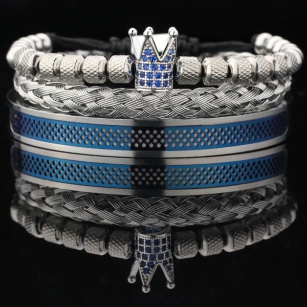 Eskame karkötők Az Eskame karkötők a kifinomult dizájnt a luxus érzetével ötvözik. Ez a háromrészes szett különböző dizájnú karkötőket tartalmaz. Együttesen harmonikus és elegáns egységet alkotnak, amely minden csuklón magára vonja a figyelmet. Ezek a karkötők tökéletes választás azok számára, akik szeretik a modern stílust a királyi eleganciával párosítani. H