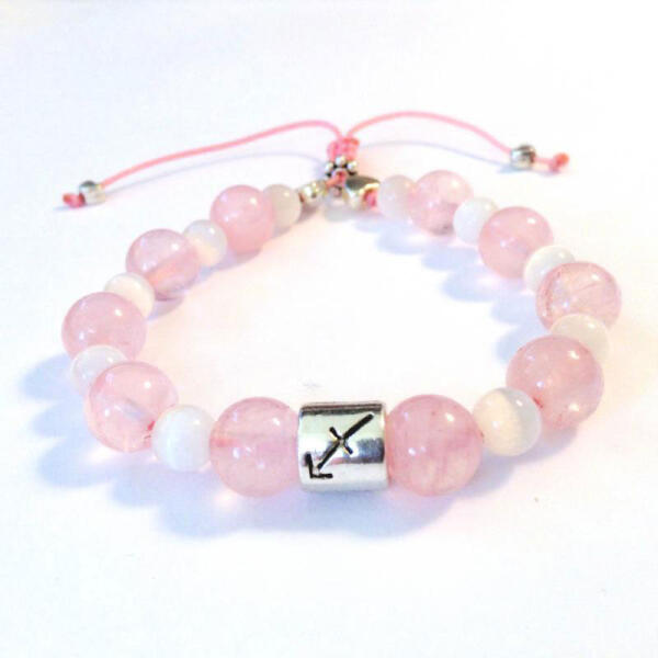Egyedi, gondosan, szeretettel, kézzel készített karkötő rózsakvarc ásványból, (ásvány karkötő), horoszkóp, csillagjegy medállal, melyet a megajándékozott születési hónapja alapján tudunk kiválasztani. Viseld ezt a hihetetlenül szép és nőies karkötőt, hogy emlékeztesd magad arra, hogy a feltétel nélküli szeretet a legerősebb eszköz, amellyel az emberi lények megv