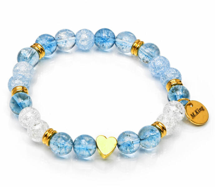 Színe sötétkék, de szürkés és zöldes árnyalatai is előfordulnak. Az ásvány golyók gumira vannak felfűzve. Amit az iolitról tudni érdemes: Lelki gyógyhatás: Vízzafírnak is nevezik, ahogyan a látomások kövének is. Segít, hogy elmélyüljünk önmagunkban, felerősíti a megérzéseinket és tisztítja gondolatainkat. Ezáltal segít felnyitni a szemünket, hogy felismerjük