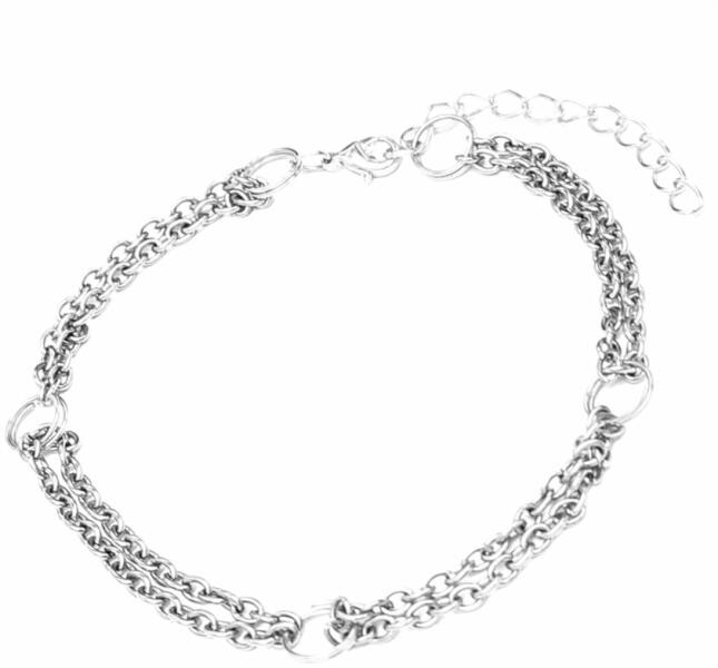 Vagány, látványos dupla karkötő nőknek és férfiaknak is jó választás. Paraméterek: Karkötő anyaga rozsdamentes acél. Karkötő mérete 17+5 cm. (Ha ettől eltérő méretet szeretnél, rendeléskor a MEGJEGYZÉSBE írd be. ) Egy sor szélessége 3 mm.