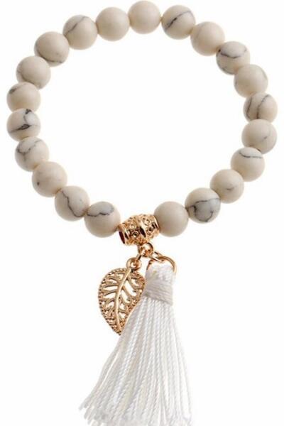Lexa Karkötő Csodálatos Lexa karkötő verhetetlen áron. Az ékszer nem tartalmaz sem nikkelt, sem ólmot, sem kadmiumot, ezért érzékeny bőrű emberek is viselhetik. Tulajdonságok: A karkötő mérete: elasztikus, gumis Anyaga: Természetes ásványkő Medálok: levél, bojt Szín: Fehér/Szürke