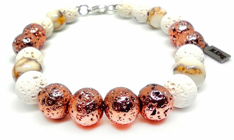 Figyelem! Nem szakad, nem nyúlik! Tartós ékszer. Kérheted csat nélküli rugalmas gumidamilra is. Amennyiben rugalmas damilra kéred, Megjegyzésbe írd be rendeléskor, hogy csat helyett rugalmas gumidamilt kérsz, és a csuklód körbemért méretét is írd meg. Az ékszer ásványai és tartozékai: – 8 mm-es matt fehér lávakő ásványok – 8 mm-es rózsaarany lávakő ásványok