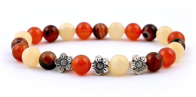 Ha szereted a sárga színt, ezt a karkötőt imádni fogod. A narancs kalcit, a karneol és a szardonix 8 mm-es ásvány gömbjeiből készített gumis karkötő, afelhasznált antiallergén, kerek szirmú, fém virágok mérete szintén 8 mm. A karkötő méretének meghatározása : a csuklód pontos méretéhez adj hozzá 1,5 cm-t. KÉRLEK VÁLASSZ MÉRETET ! Az ásványok nem helyettesítik a