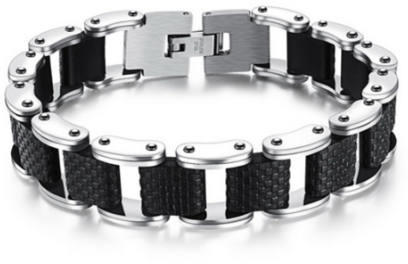 Nemesacél karkötő silicone díszítéssel. Férfias megjelenés, határozott vonalvezetés. Ékszer alapanyaga: Nemesacél, silicone Méret: 210mm Súly: 38g