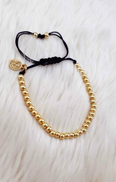 Gyönyörű, egyedi zsinór karkötő arany apró gyönggyel. Záródása a behúzószárral megoldott.