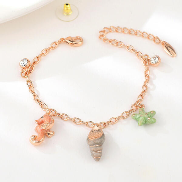 Cikkszám: 0468 Divatos charm karkötó: - rózsaarany bevonattal, - áttetsző kristállyal, - zománcfestéssel. Hossza: 16 cm + 4 cm ( állítható ). Súlya: 14 g. Alapanyaga: minőségi fémötvözet. Fiatalos, állatfigurás, kristályos ékszer ! A megadott méreteket kérjük vegyék figyelembe !