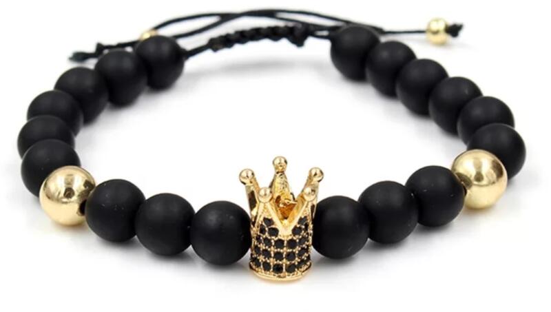 Gyönyörű Yvonne Design LUXURY ónix ásványkarkötő, mely arany szín mikrokristályos korona medált tartalmaz. Alapja selyemzsinór, mérete állítható a behúzószárral. Jelenleg rosegold és ezüst színben elérhető a termék.