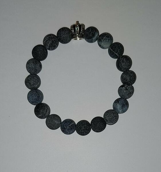 Matt Szürke achát ásványból készült férfi karkötő korona dísszel A Gödöllői Királyi Kastély ajándékboltjában is kapható. Achát vélt hatásai: védő, aura tisztító, koncentráció, öntudatosság, összeszedettség, szellemi növekedés, szív és érrendszer, szerencse, nyugtató, agyi funkciók fejlesztése, emésztés, Az Achát erős földelő ásványfajta. Támogatja