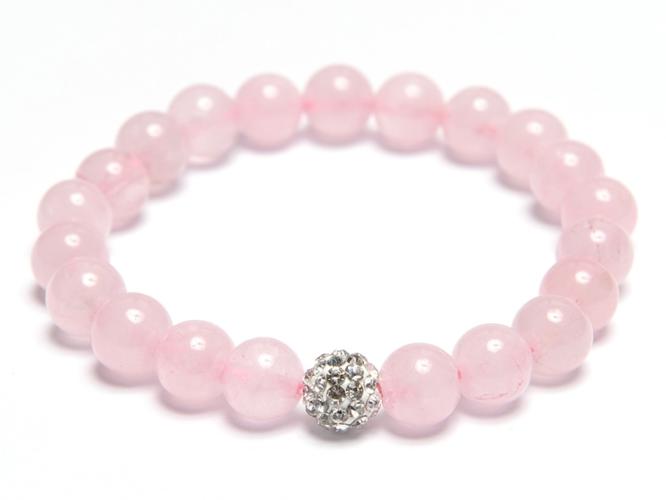 A karkötő 8 mm-es rózsakvarc ásványokat tartalmaz és antiallergén 8 mm-es A minőségű strasszgolyót, gyöngyfűzőgumira fűzve. A karkötő méretének meghatározása : a csuklód méretéhez adj hozzá kb. 1,5 cm-t. Az ásványok nem helyettesítik az orvosi diagnózist és kezelést. A rózsakvarc hatása : a rózsakvarc az öröm, a boldogság, a szeretet és a szerelem közvetítő