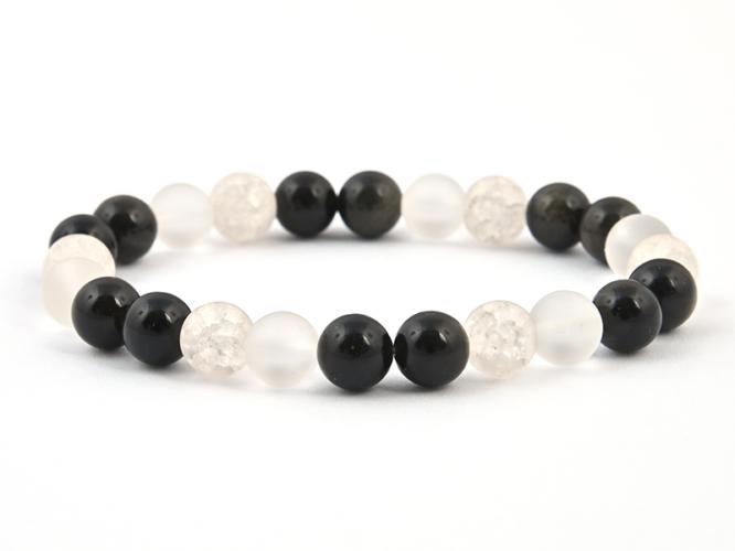 Ez ásvány karkötő 8 mm-es matt- és repesztett, matt hegyikristály gömböket és 8 mm-es ezüstfényű obszidiánt tartalmaz, duplasorosan gumira fűzve. A karkötő méretének meghatározása : a csuklód méretéhez adj hozzá 1,5 cm-t. Az ásványok nem helyettesítik az orvosi diagnózist és kezelést. Az obszidián hatása : az obszidián feszültségoldó, nyugtató hatású. Hatéko