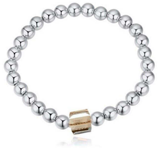 Középen csillogó, kocka alakú, különleges kristállyal ékesített, ezüst színű gyöngyökből fűzött karkötő. Kialakításának köszönhetően felveszi a csukló méretét. Ékszer alapanyaga: nikkelmentes antiallergén fém Mérete: 16 0mm