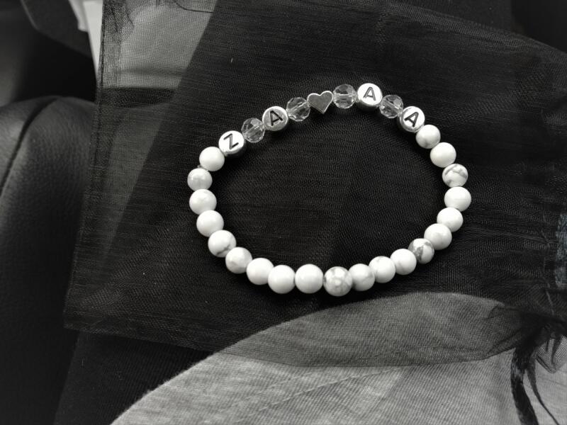 Ez az egyedi karkötő, 6 mm márványos howlit ásványokból készült, és egyedileg rendelhetők hozzá a betűk. Középen egy szívecske medál található, és a szívecske két oldalán 2-2 betűt tudsz megadni. Ha családod 3 vagy 5 vagy ennél több tagból áll, akkor is megtudod rendelni ezt a karkötőt. A betűket kérlek a vásárlás végén a megjegyzés rovatban add meg nekünk a