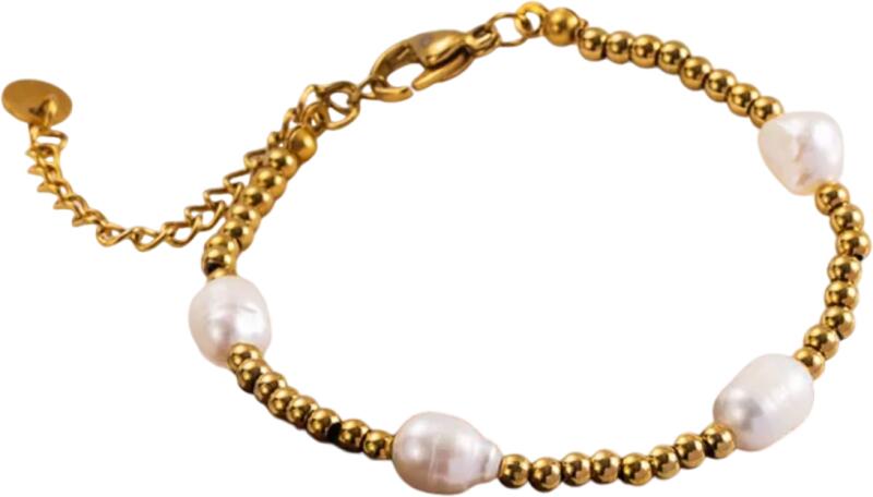 Sweet Pearl karkötő Az elegáns karkötő a gyönyörű gyöngyöket a fémgyöngyöcskék fényével kombinálja, így csodás kiegészítőt alkot minden alkalomra. Az aszimmetrikus gyöngyök finom és természetes megjelenést kölcsönöznek a karkötőnek, míg az arany gyöngyöcskék luxus érzetet adnak hozzá. Ez a dizájn tökéletes olyan nők számára, akik az elegancia és az ered