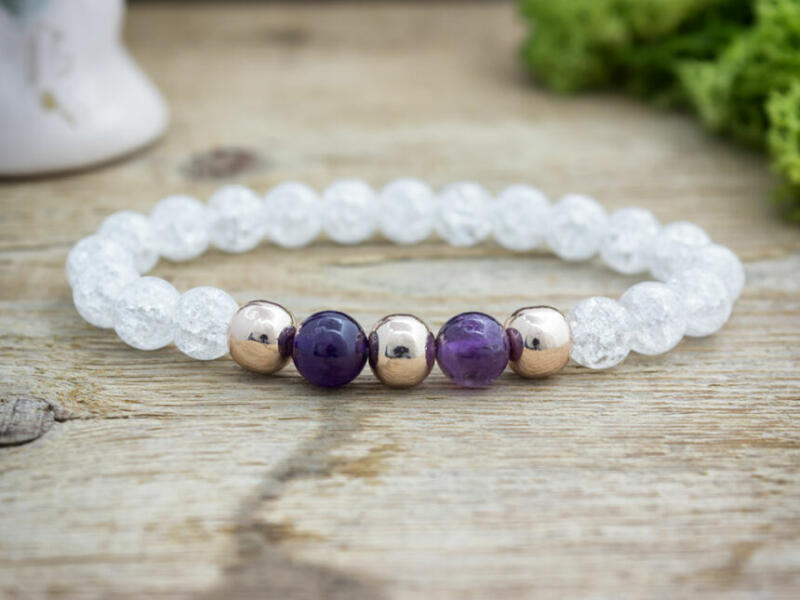 Ametiszt, hematit és roppantott hegyikristály ásványokból fűzött gumis karkötő. Amit a hematitról érdemes tudnod: Ez a metálosan csillogó szürkés-barnás kő más néven "vérkőként" is ismertté vált. Ez az elnevezés nem csak testi gyógyhatásai miatt illik rá, hanem mert csiszolásuk során az ember ujját vérpiros színűvé festi. A hematit egy erős energiakő, segítsé