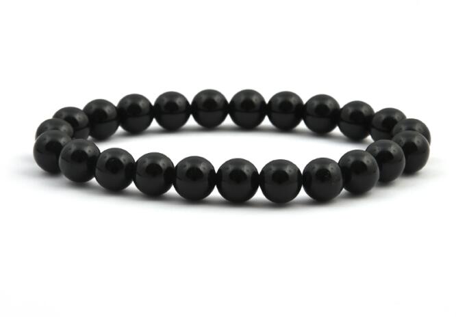 Az obszidián fekete, fényes 8 mm-es gömbjeiből készítettünk gumis karkötőt. A karkötő méretének meghatározása : a csuklód méretéhez adj hozzá 1,5 cm-t. Az ásványok nem helyettesítik az orvosi diagnózist és kezelést. Az obszidián hatása : az obszidián feszültségoldó, nyugtató hatású. Hatékonyan issza magába a negatív energiákat. Segít felismerni az idejétmúl