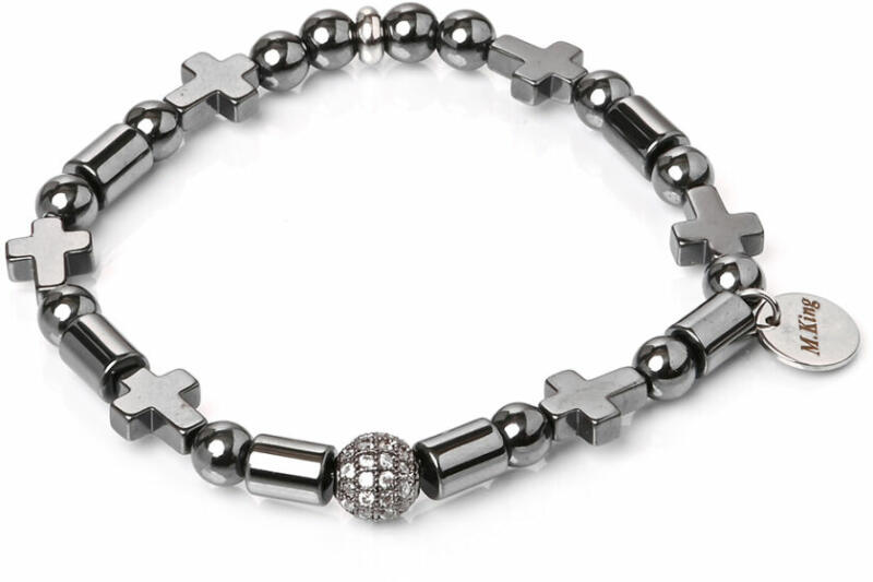 Gyönyörű hematit karkötő, különleges feketék kombinációja, megkoronázva egy remekül kidolgozott cirkóniummal kirakott gömb dísszel. A hematit keresztektől még egyedibb az összhatás. Vagány, letisztult ékszer. A különböző formák tökéletesen kiegészítik egymást, a végeredmény egy egyszerűségében nagyszerű ékszer. Ha strasszos dísz nélkül kéred a karkötőt,