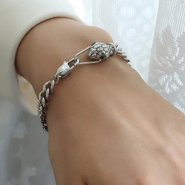 Snake Head Karkötő Különleges, divatos Snake Head karkötő verhetetlen áron. Az ékszer nem tartalmaz nikkelt, ezért érzékeny bőrű emberek is viselhetik. Különleges kialakításával biztosan elbűvöl mindenkit. Tulajdonságok: A karkötő hossza: 16cm Díszítése: Kígyófej Anyaga: Nemesacél Szín: Ezüst