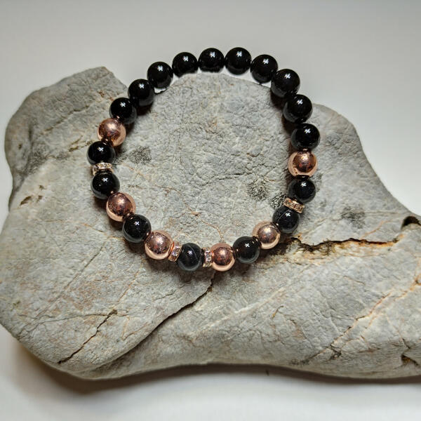 Obszidián ásványgolyókból fűzött gumis karkötő. Amit az obszidiánról érdemes tudnod: Az obszidián vulkánüveg, a föld mélyében készült. Sok színben és árnyalatban létezik, de a fekete a leginkább kedvelt és használt. A szivárvány-obszidián a legértékesebb, amely a szivárvány minden színében játszik, és az ún. apacskönny, amelyet Arizonában bányásznak. Mind